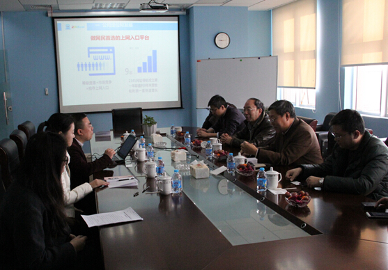 韓猛就公司產品、盈利模式、合作伙伴及未來三年規劃等做了詳細介紹,并與客人探討了我公司pc端和移動端產品的發展方向。
