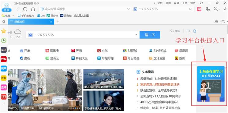 據悉,有些家長不懂功能操作搗鼓兩小時,耽擱了孩子的在線學習,上演大型“翻車現場”。目前2345加速瀏覽器已在其新標簽頁提供“上海市在線學習官方平臺入口”,無需輸入網址即能一鍵打開學習平臺。其瀏覽器也提供了收藏夾功能,可將平臺地址一鍵添加到收藏夾,擁有更多方便快捷的進入平臺方式。