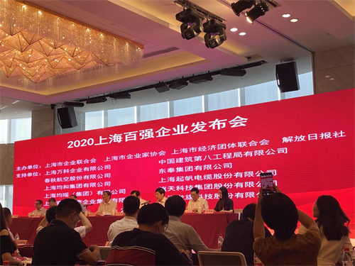 2020年8月18日,由上海市企業(yè)聯(lián)合會(huì)、上海市企業(yè)家協(xié)會(huì)、上海市經(jīng)濟(jì)團(tuán)體聯(lián)合會(huì)和解放日?qǐng)?bào)社聯(lián)合主辦的2020上海百?gòu)?qiáng)企業(yè)發(fā)布會(huì)在上海舉行,2020上海企業(yè)100強(qiáng)、上海制造業(yè)企業(yè)100強(qiáng)、上海服務(wù)業(yè)企業(yè)100強(qiáng),2020上海民營(yíng)企業(yè)100強(qiáng)、上海民營(yíng)制造業(yè)企業(yè)100強(qiáng)、上海民營(yíng)服務(wù)業(yè)企業(yè)100強(qiáng)和2020上海百?gòu)?qiáng)成長(zhǎng)企業(yè)50強(qiáng)排行榜發(fā)布。