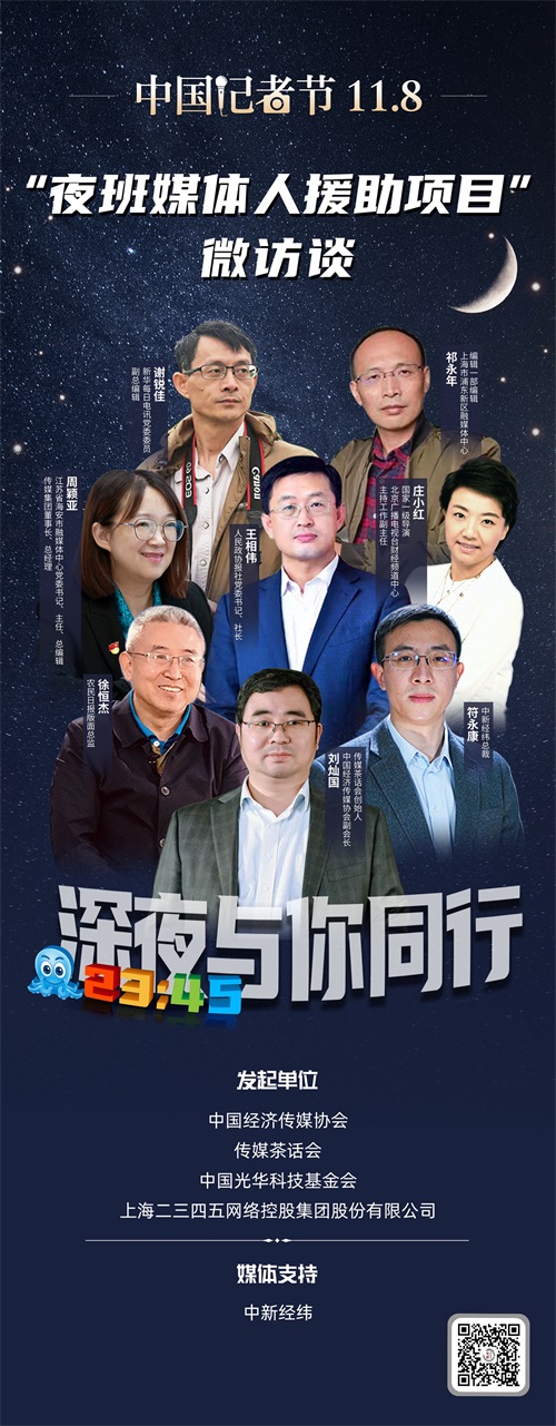 此次推出的“夜班媒體人援助項(xiàng)目”微訪談,是2021年度“夜班媒體人援助項(xiàng)目”的重要短視頻記錄形式,由中國經(jīng)濟(jì)傳媒協(xié)會(huì)、《傳媒茶話會(huì)》、中國光華科技基金會(huì),以及上海二三四五網(wǎng)絡(luò)控股集團(tuán)股份有限公司聯(lián)合發(fā)起,由中新經(jīng)緯提供媒體支持。