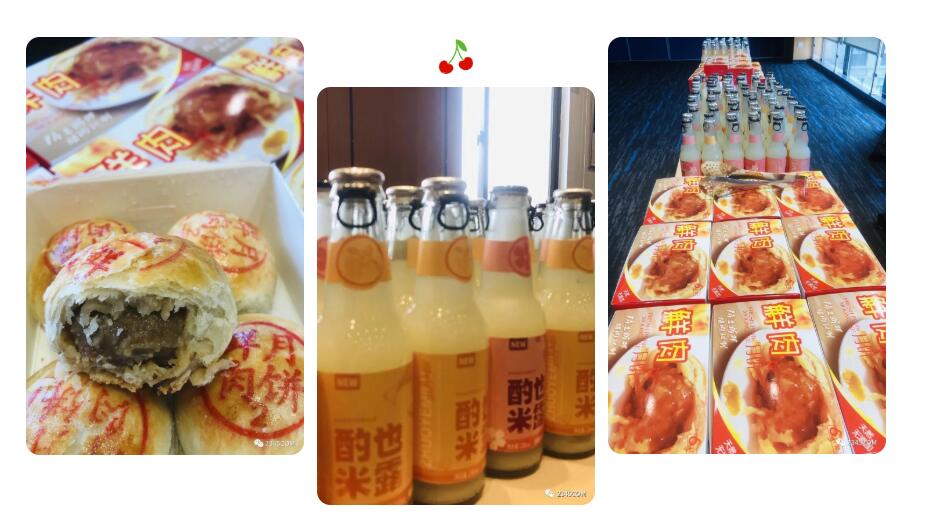 每周三的下午茶時間依舊,但不一樣的是這次行政部的小姐姐為伙伴們精心準備了鮮肉月餅和飲料。