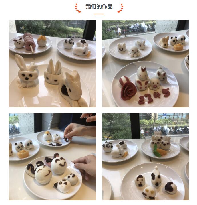 DIY現(xiàn)場的氣氛十分活躍,幾袋平常的面粉,加上餡料,在咱們2345小伙伴的手里,像變魔術(shù)一樣,包出了各種圖案的作品:小兔子、愛心、娃娃,當(dāng)然還有我們幸運的小章魚。